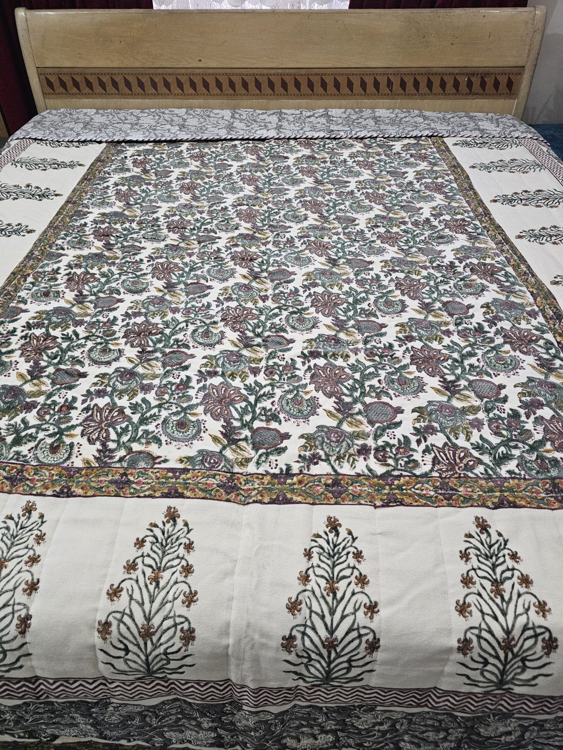 Reversible Handblock Double AC Quilt – Shaneel Floral Pattern